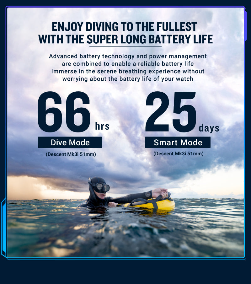 UP TO 30 HOURS OF BATTERY LIFE IN DIVE MODE