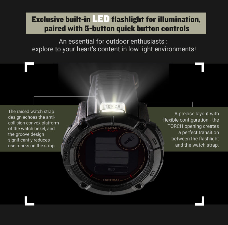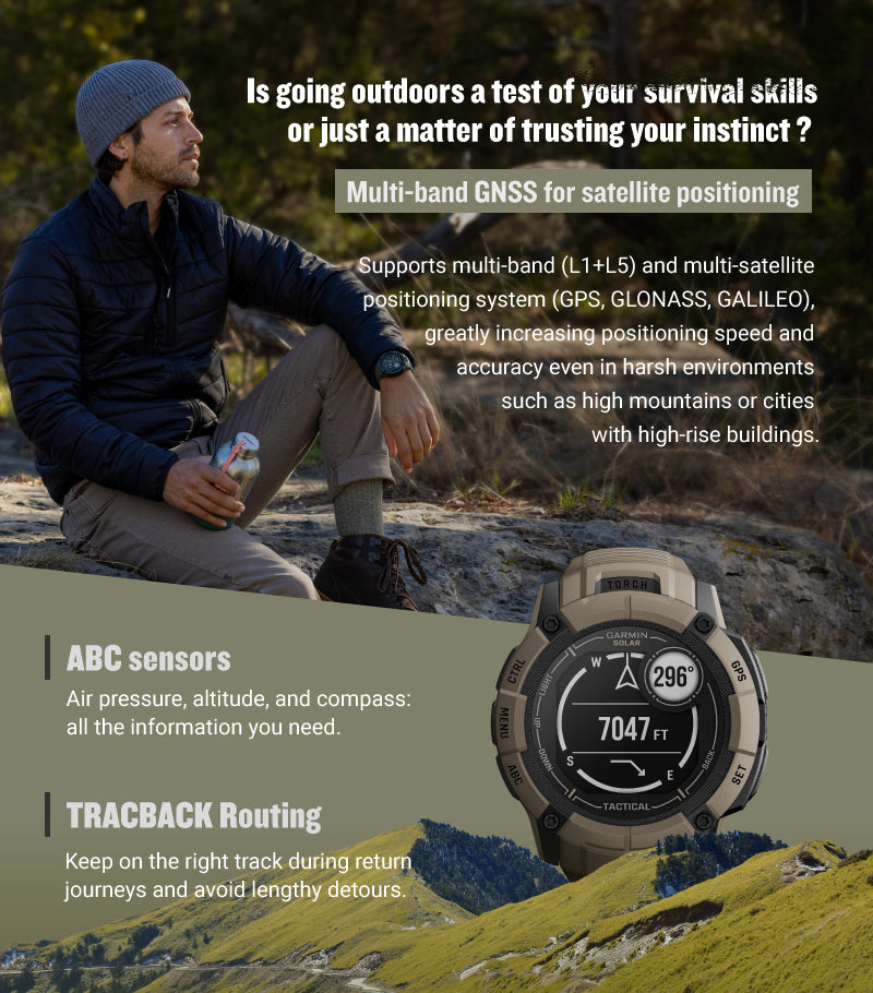Its expansive solar charging lens keeps a larger battery going longer— powering advanced training features, a built-in flashlight, multi-band GNSS, health/wellness monitoring sensors and much more.